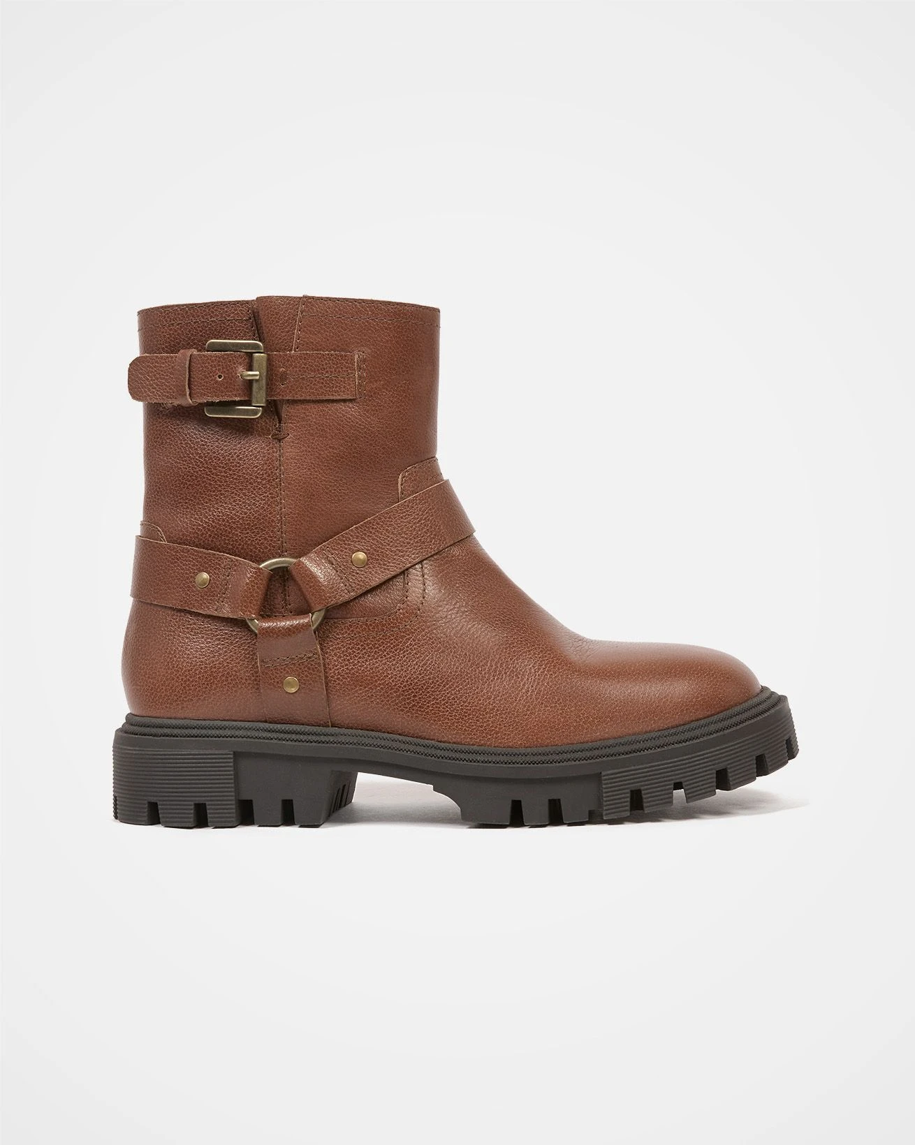 Our Biker Ankle Boots feature a quality leather upper with strap and ring biker detailing. They come with a zip opening for easy wear and are lined with leather, sitting atop a chunky sole for unrivalled durability.