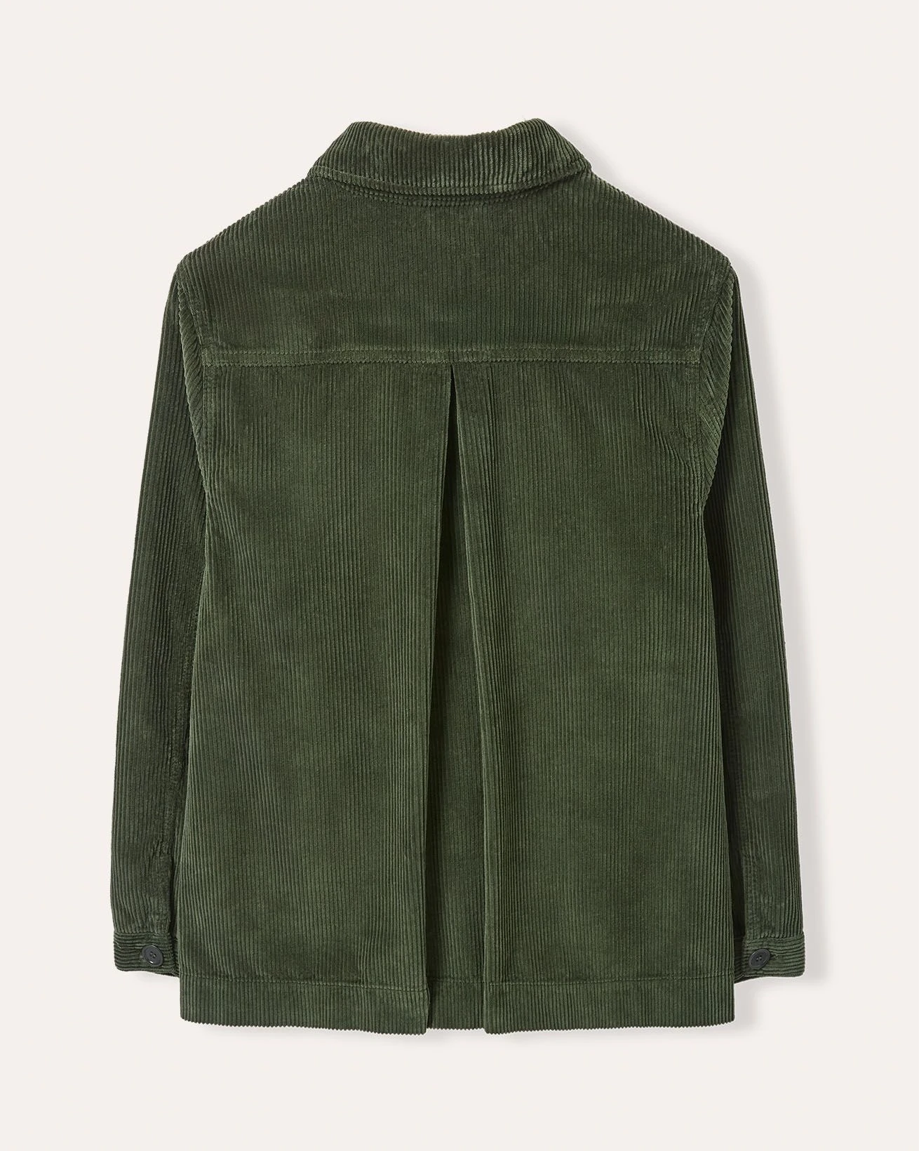 The Corduroy Shacket features a collared neckline and easy fit workman style. Made from cotton blended with recycled pre-consumer cotton, it is unlined and finished with corozo buttons. Crafted in Portugal for durable, casual wear.