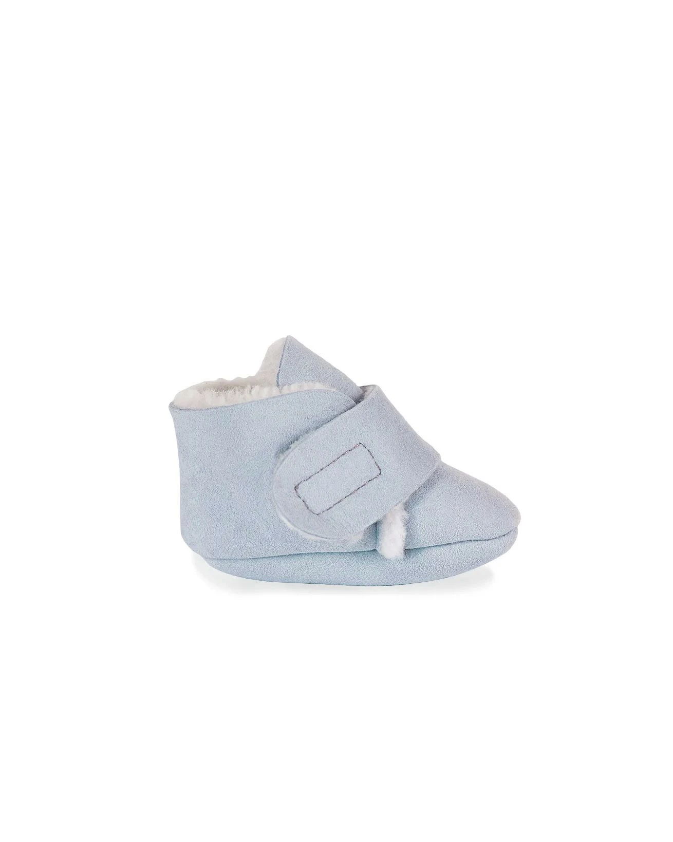 Designed in super-soft shearling to tick off comfort and function in one, these cute booties are fitted with a riptape strap so they pop on and off with ease (while adding in a slight challenge for little fingers—we all know how they love to pull their footwear off on the go!).