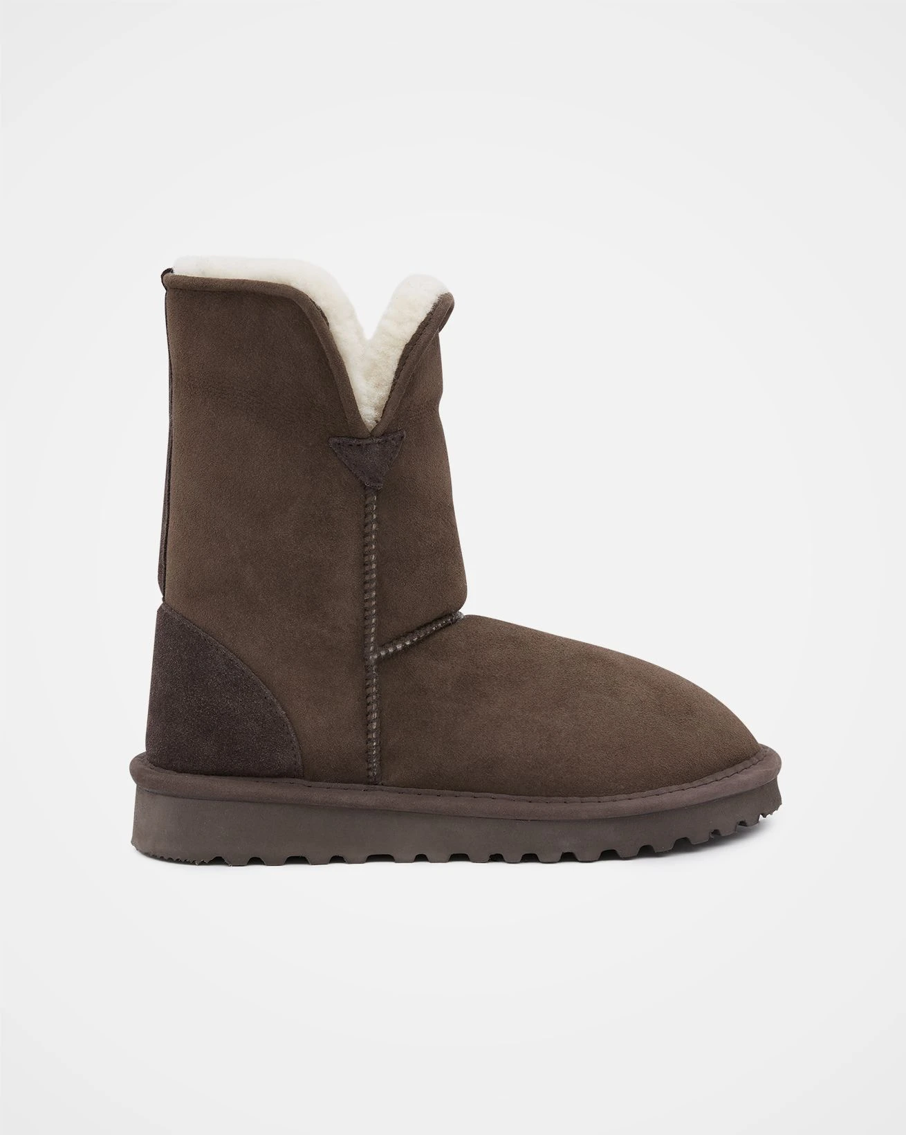 A new take on our bestselling celt boots with a stylish new shape, whilst still crafted from our classic double face shearling. New details include curved bound seams and a curve split side at the opening of the boot, allowing them to be worn folded down to show off the chic wool inner, or up for extra length and warmth.