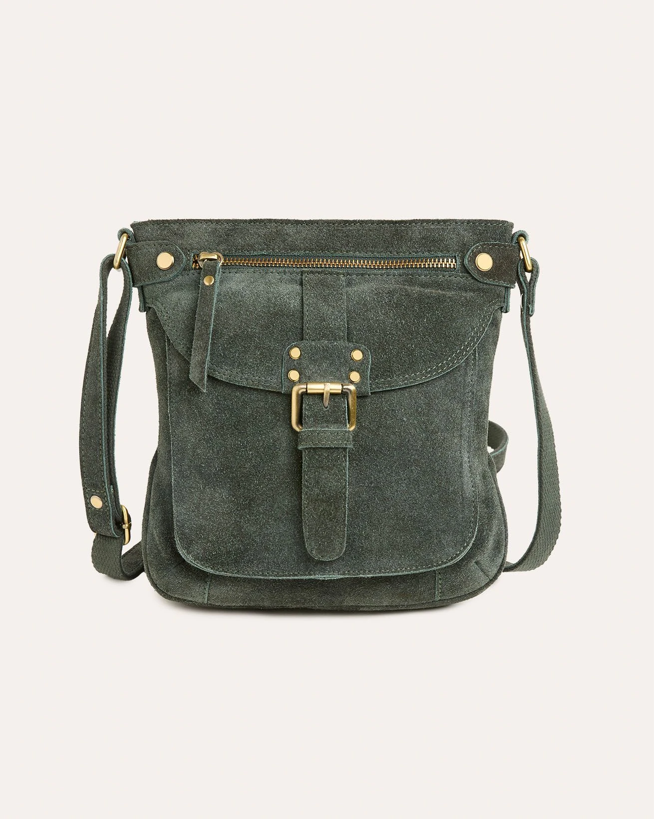 100% leatherAntique-effect metal trimsLeather and webbing adjustable strapFront pocket with magnetic closure and buckle strapZipped and unzipped inner pockets