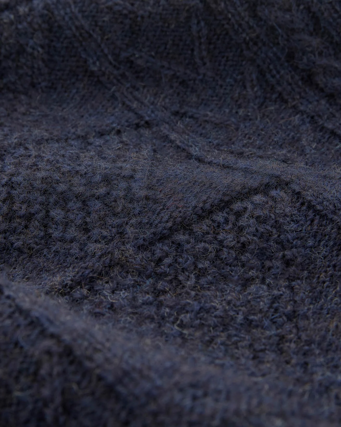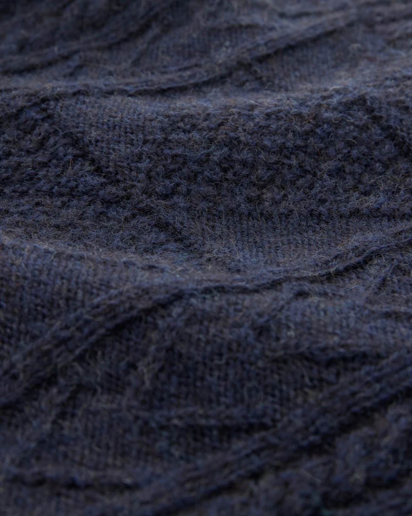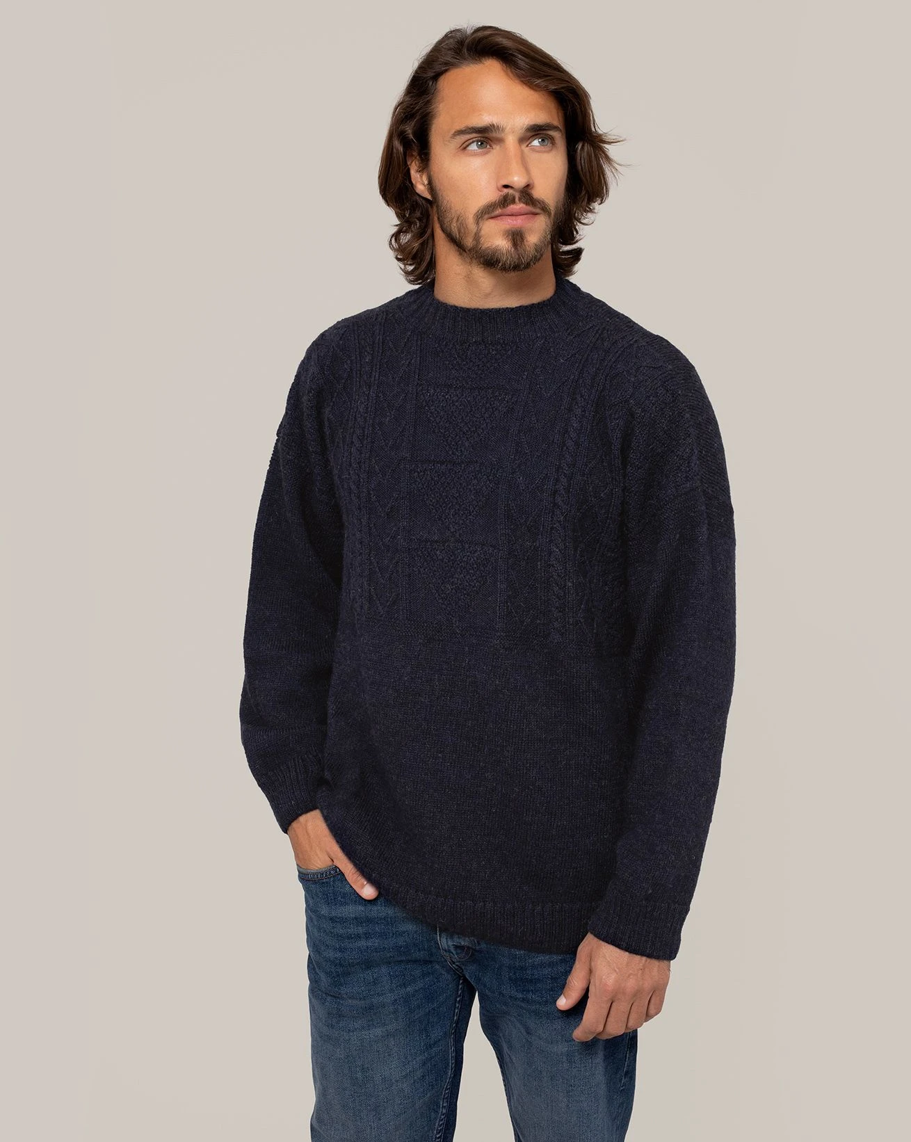 Made from British wool, this sweater boasts a traditional fisherman’s Gansey stitch detail and a classic crew neckline. Ribbed neck, cuffs, and hem ensure a comfortable fit, reflecting heritage and durability.