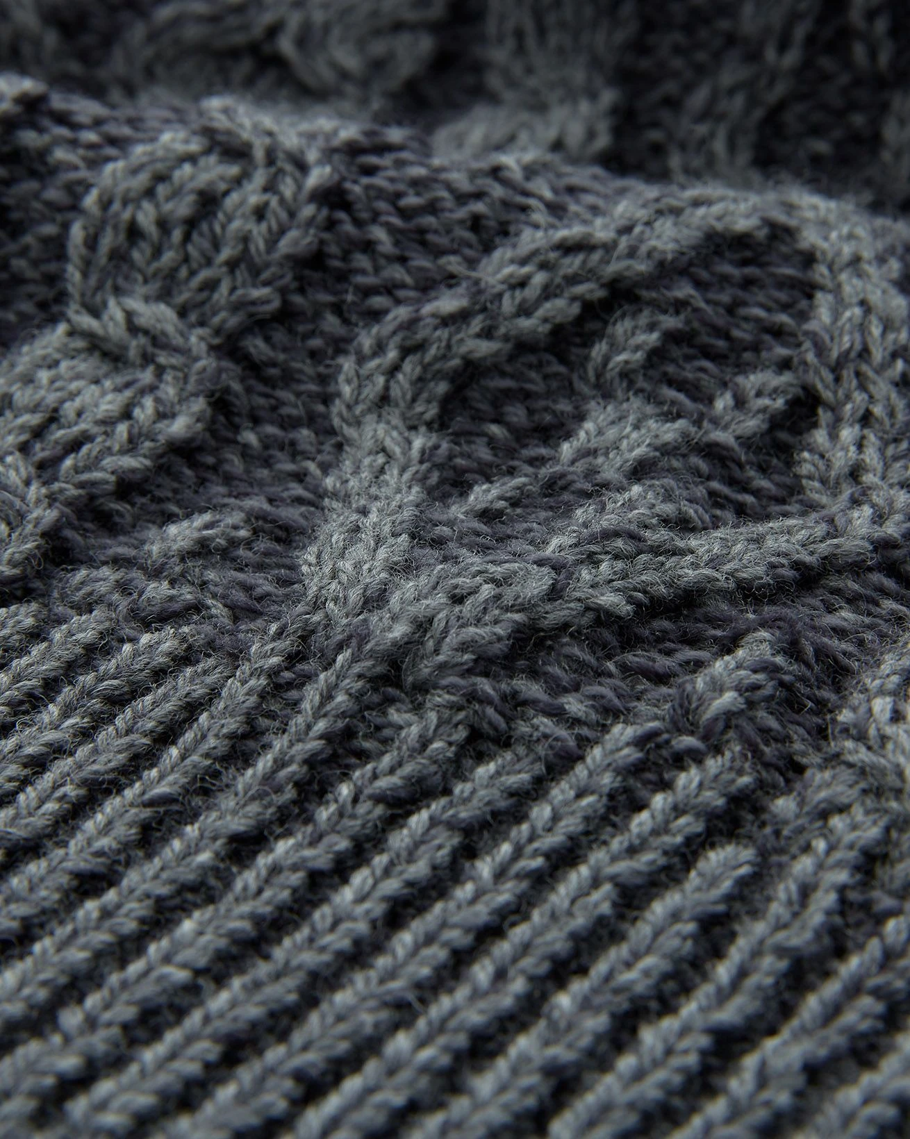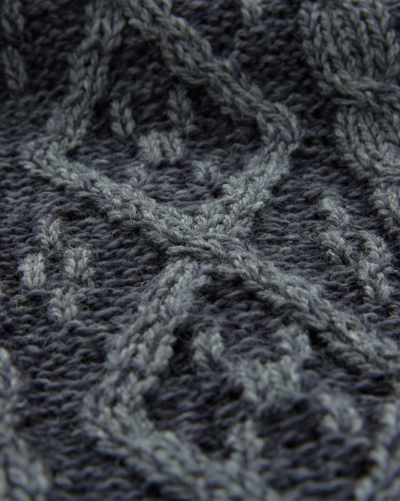 Soft and warm, the classic Aran cable design of this sweater features a modern twist. We’ve incorporated a plaited knitted technique which uses two shades of yarn in light and dark colours, stitched in a way that gives the knit a two tone appearance, adding something special to a timeless staple. Subtle details include ribbing at the crew neckline, cuffs and hem.