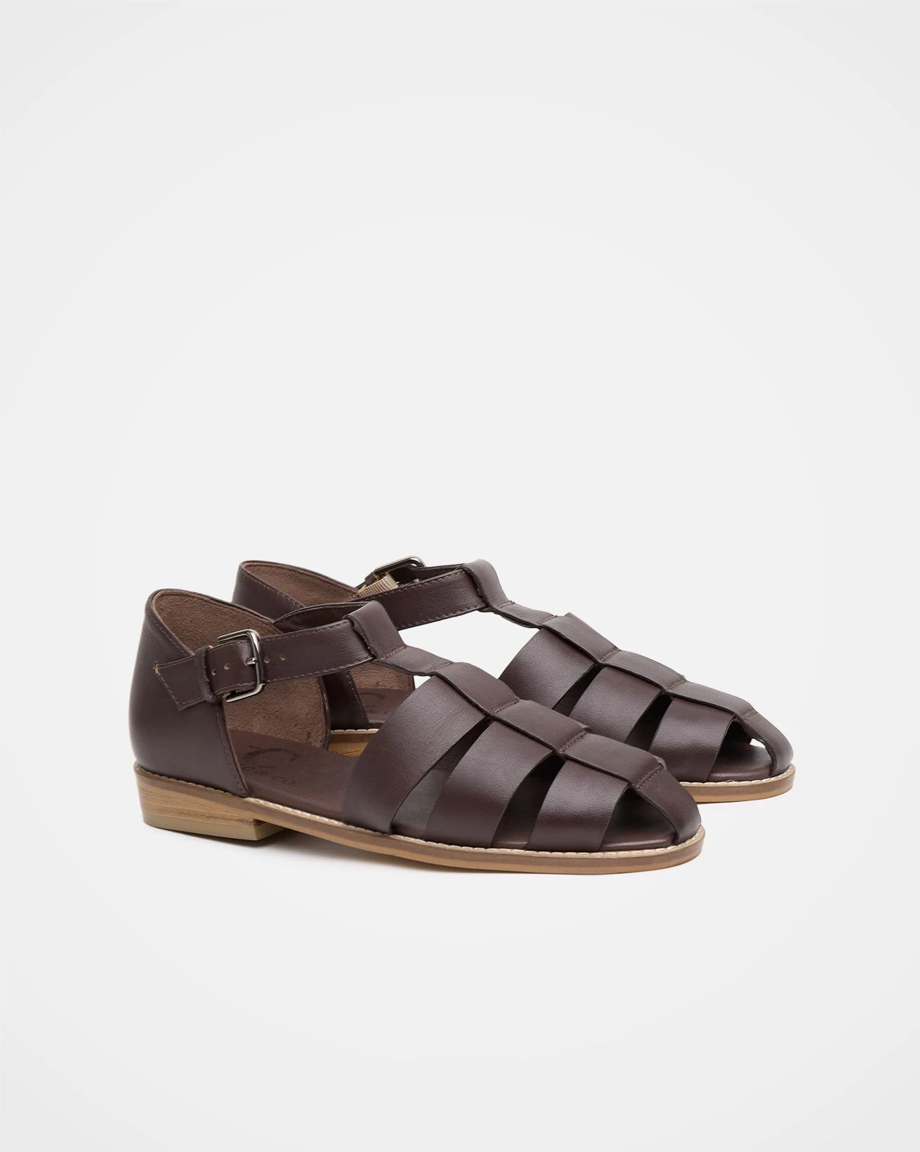 Classic fisherman-inspired sandals with a leather upper and buckled ankle strap. The smart low-heel sole offers a clean, versatile finish, making these sandals ideal for both casual and dressed-up looks.