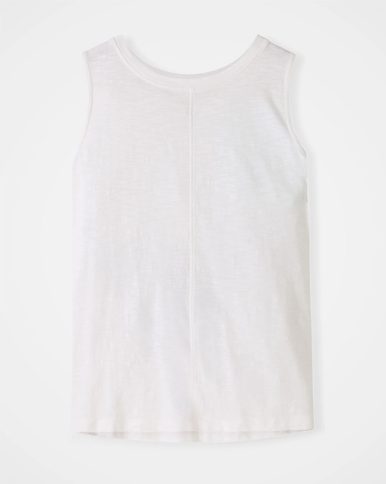 This sleeveless tank features a crew neckline and a flattering swing shape, making it a versatile piece for warm days. Crafted from organic cotton, it offers comfort and breathability, perfect for casual outings or layered looks.