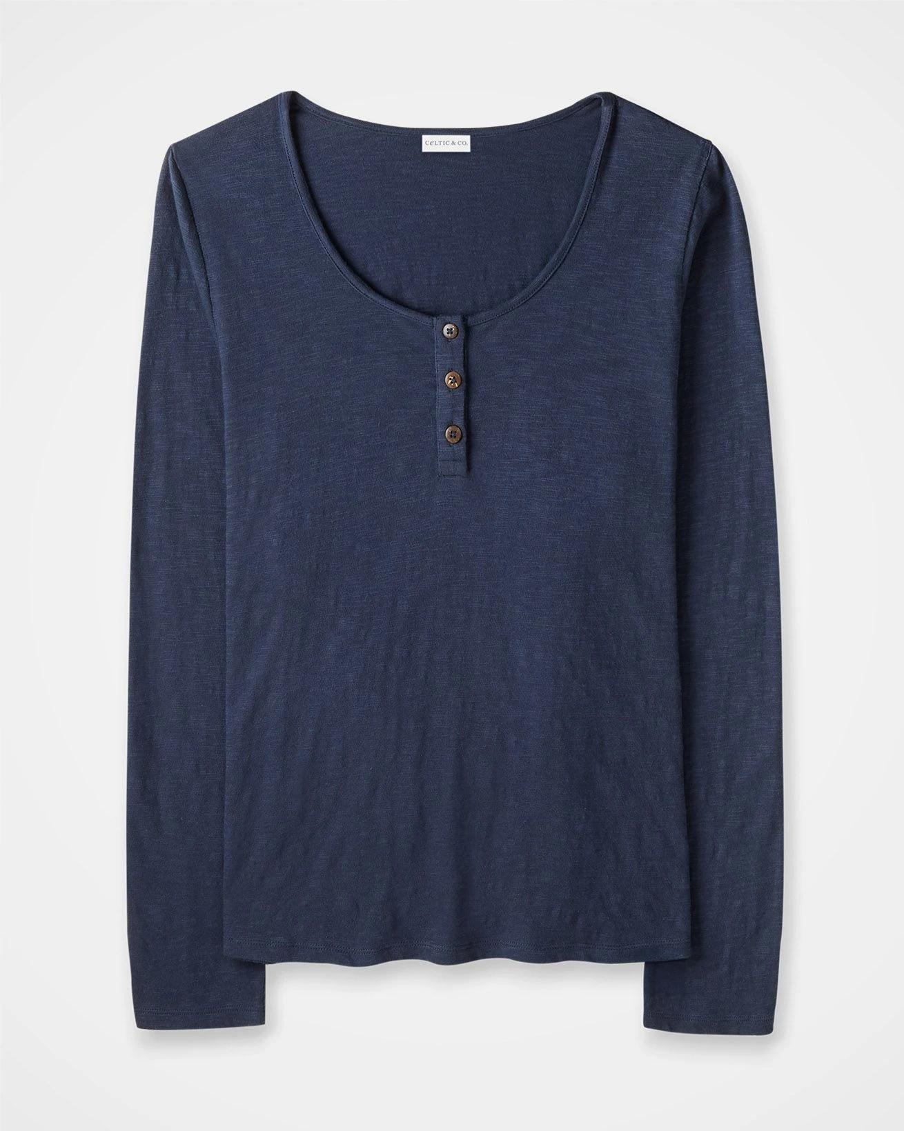 With a scoop neckline and coconut button placket detail, this long-sleeved Henley top provides a relaxed yet refined fit. Made from organic cotton, it’s ideal for layering or wearing on its own for a laid-back style.
