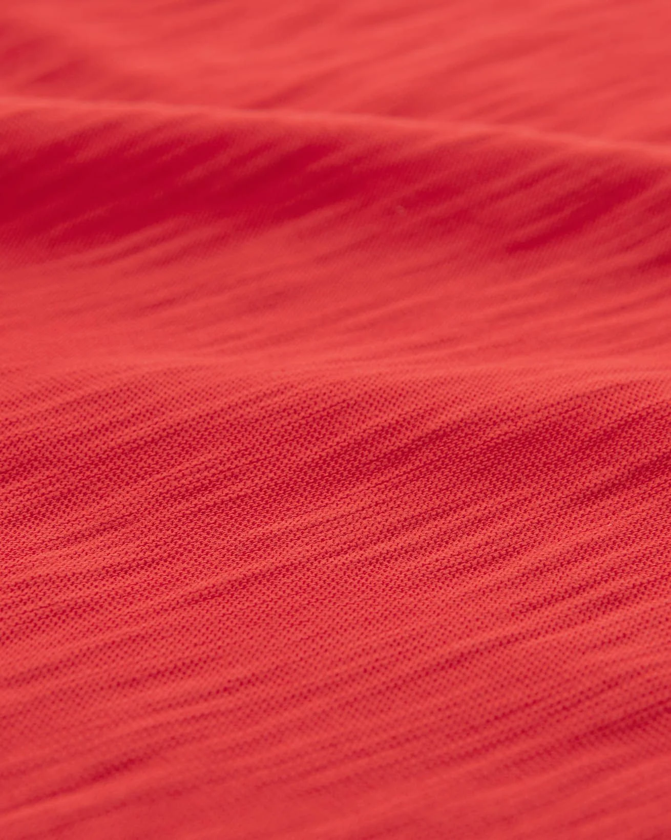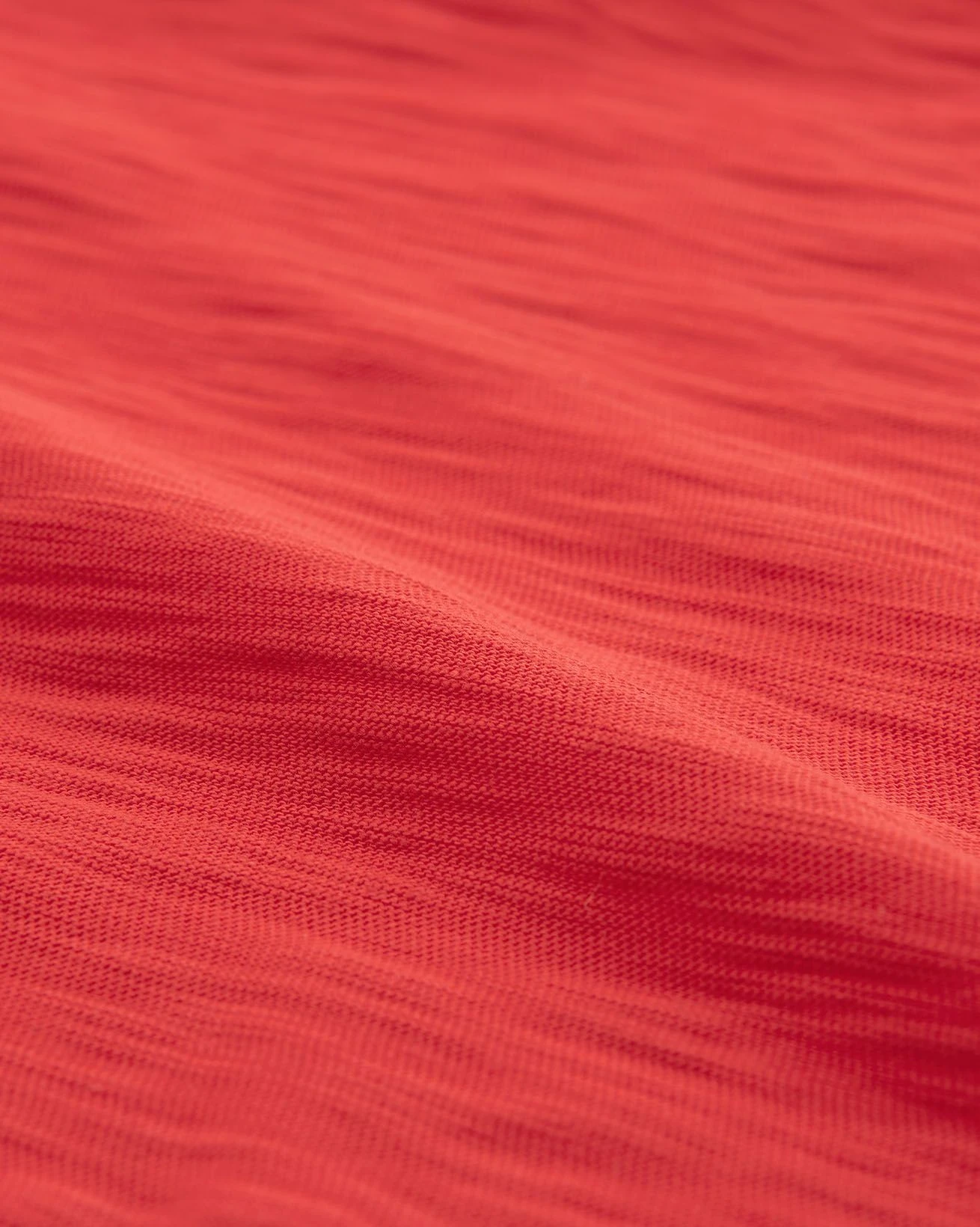 The slub jersey fabric adds some subtle surface texture to the top. Featuring a flattering scoop neckline, half length sleeves and body skimming fit. The loop lace trim inserts add interest to the sleeve.