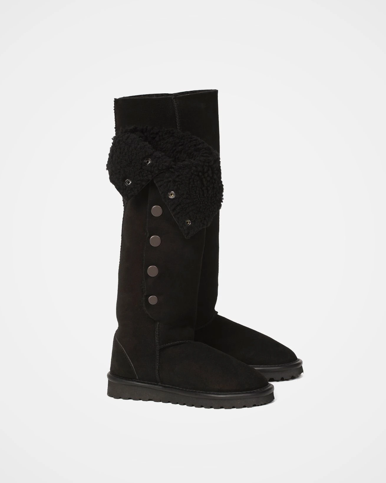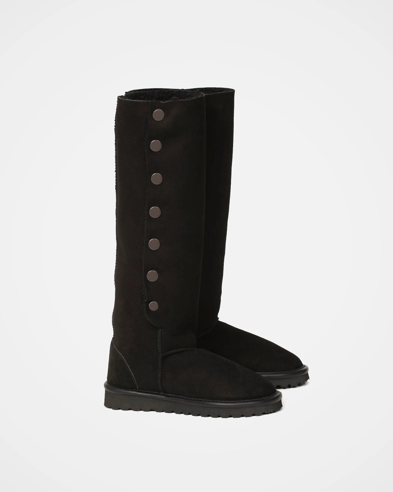 Injecting a little extra attitude into a long-standing favourite, our popper boots offer two chic looks in one super-cosy package. Hand crafted in Cornwall from 100% British shearling with double-stitched construction, these boots can be ordered in a calf or knee length.