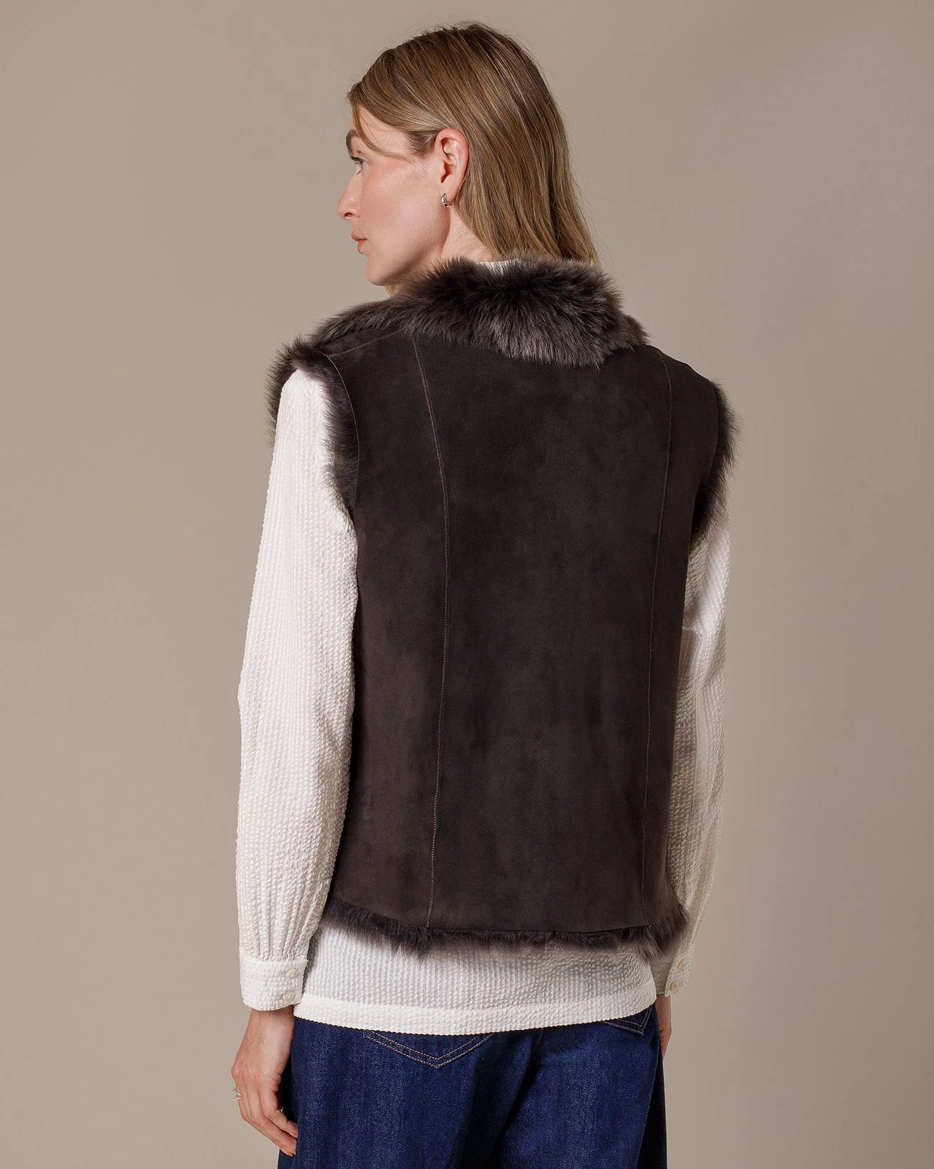 Our reversible Toscana gilet is crafted from soft Toscana sheepskin and features a stand collar with a tie-front fastening. Made in Great Britain, it offers versatile, heritage-inspired warmth that can be worn either way, combining practicality with enduring quality.