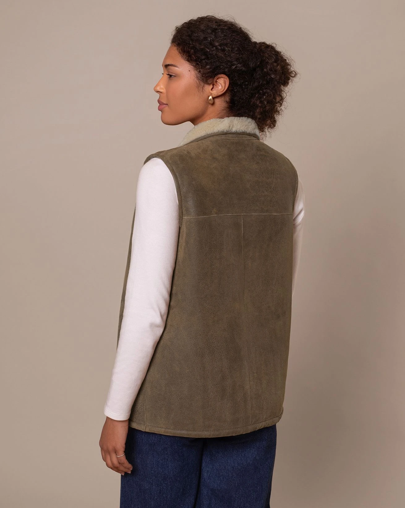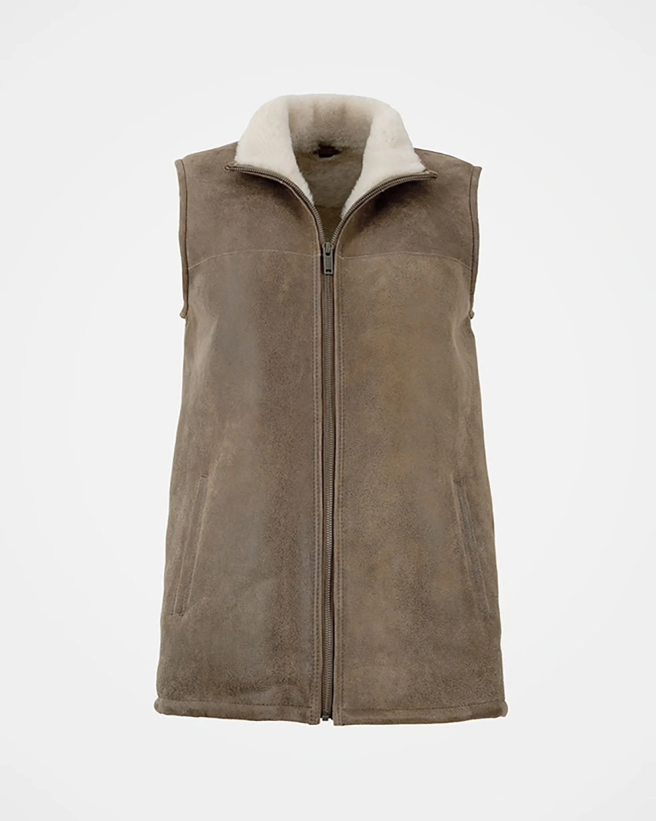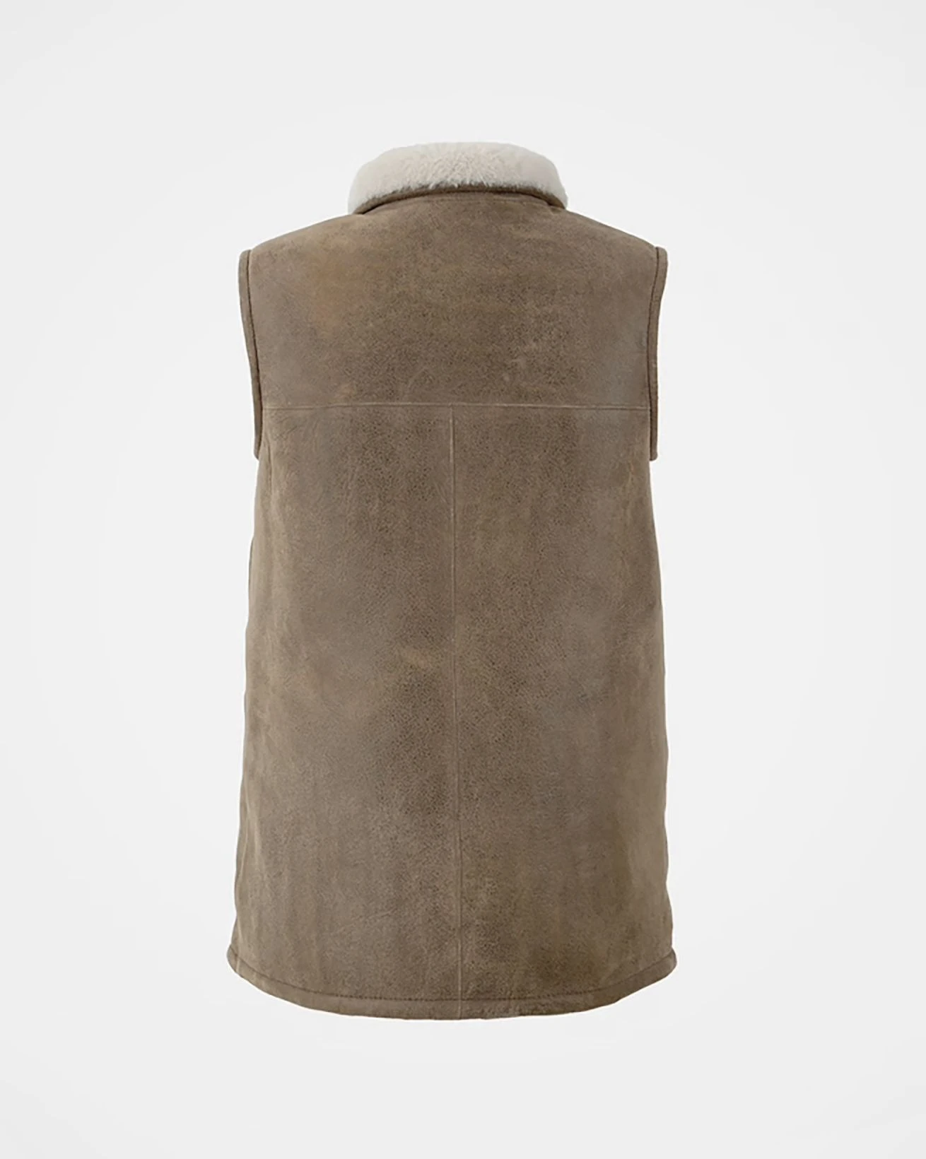 Perfect for keeping your core wonderfully warm on transitional days, our bodywarmer is crafted in luxurious shearling with a peached, antiqued finish at the outer.