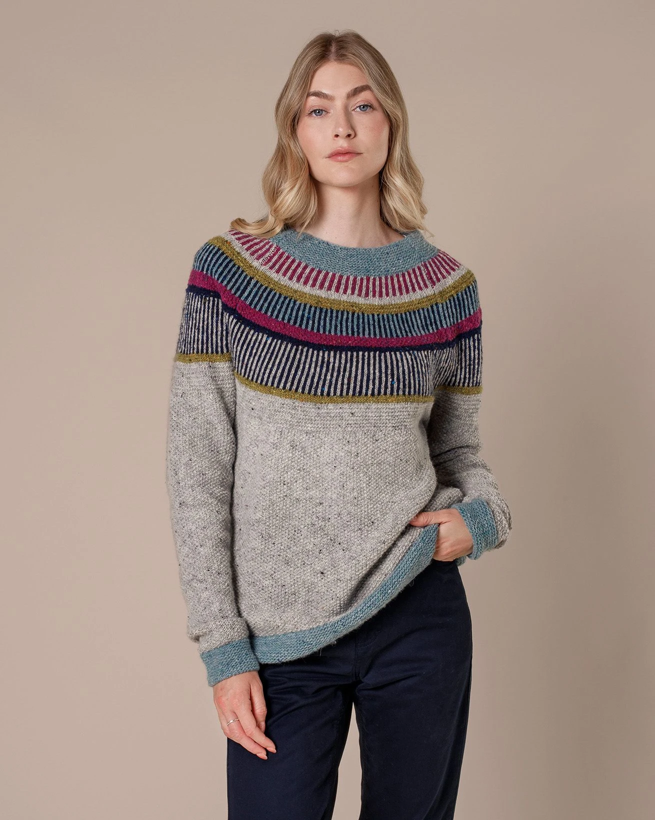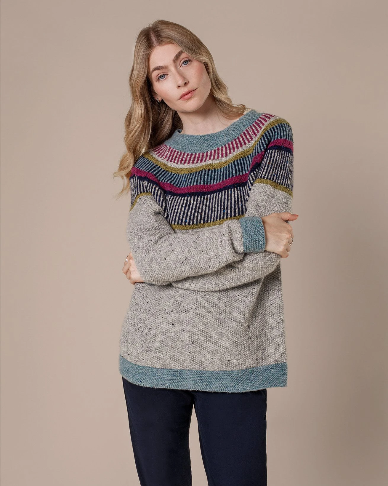 Inspired by our popular funnel-neck sweater, this statement design is crafted with Donegal wool that offers a cosy feel without looking chunky and has a beautiful flecked appearance.