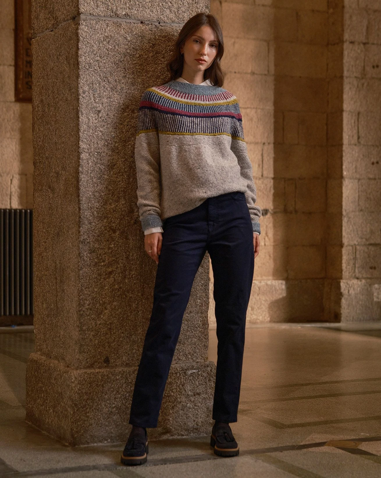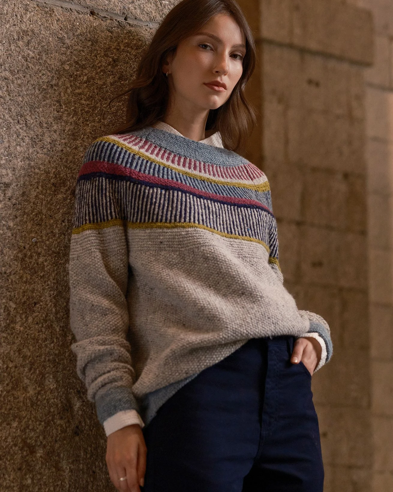 Featuring colourful patterns at the yoke, and solid accents at the hem and cuffs, it’s packed with rugged personality and makes a toasty layer for bracing walks along the coast.