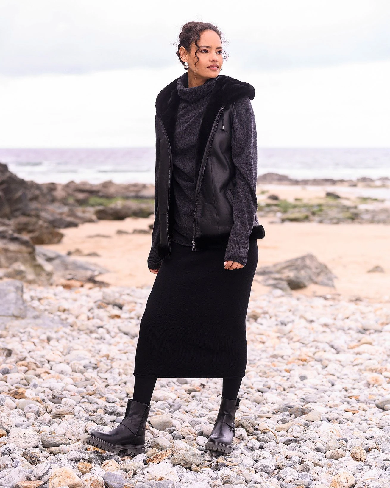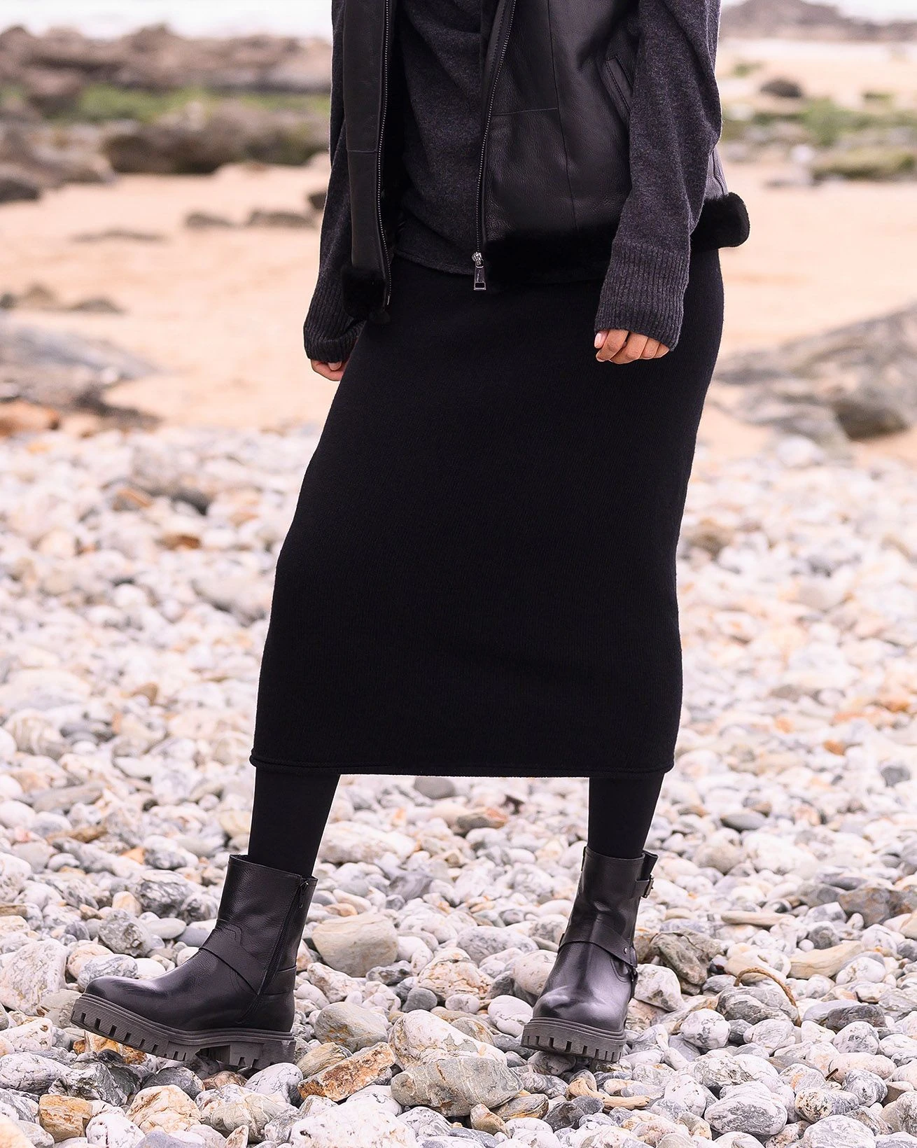This fitted straight skirt knitted in our bestselling supersoft Geelong yarn, offers a flattering silhouette with its mid-weight knit. Designed for versatility, it pairs perfectly with coordinating items for a cohesive look. Ideal for both casual and formal occasions.