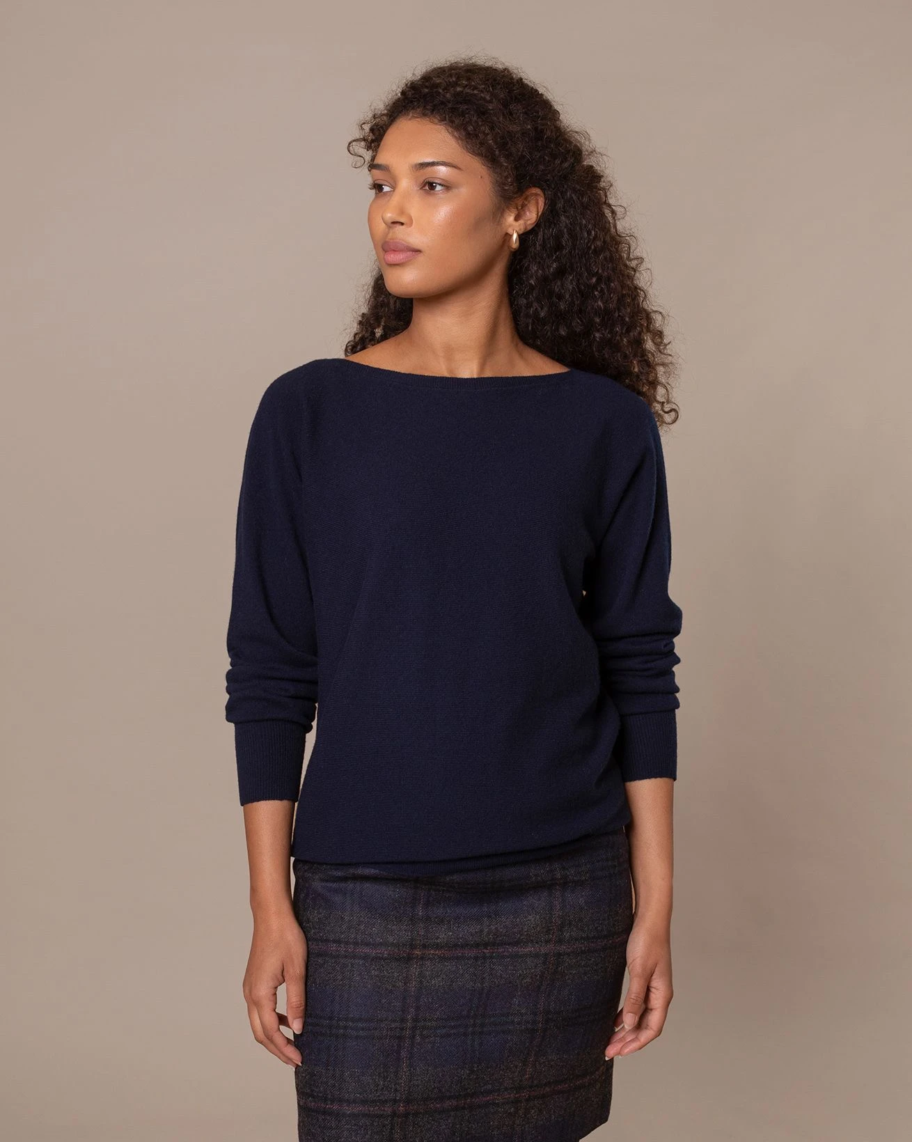 This super soft sweater has a relaxed fit coupled with a tight hem to create a flattering blouson effect. Clean and simple in style, we’ve designed this with a slash neckline with a narrow, ribbed collar trim and deep ribbed hem and cuffs. Perfect for lounging, every day wear or dressing up for evenings out.