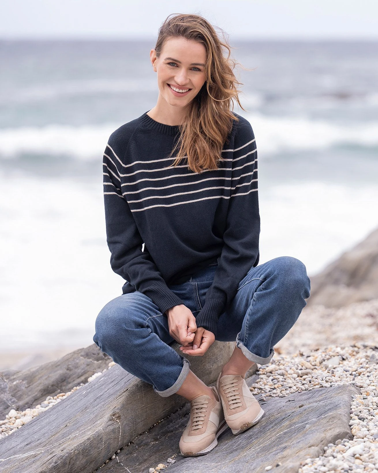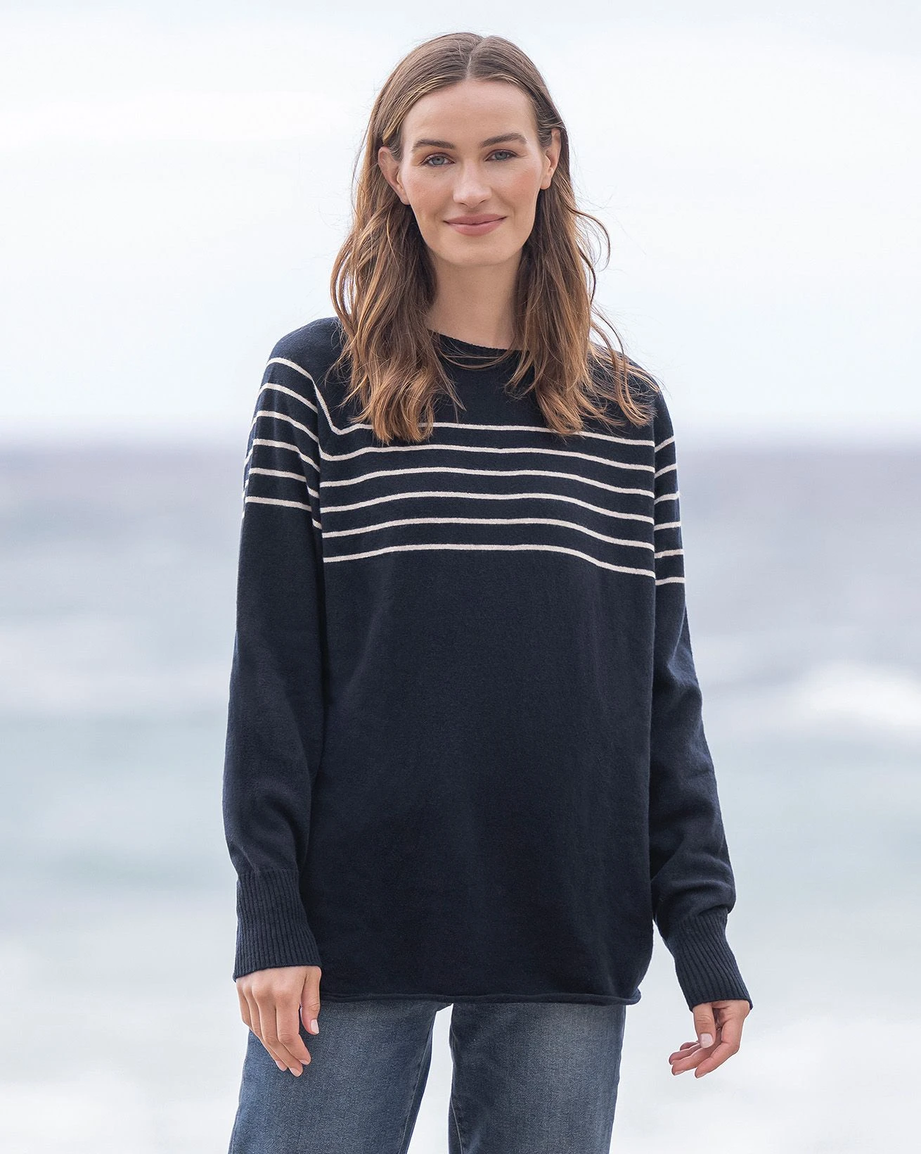 Cut to a slouchy shape, our core Geelong sweater style has been updated with an easy-to-wear crew neckline for more versatility and wearability throughout the seasons. Featuring ribbed cuffs and our signature cast-off rolled hem, this sweater is created to be lived in. Perfect for days in the garden, relaxing inside or an evening on the beach.